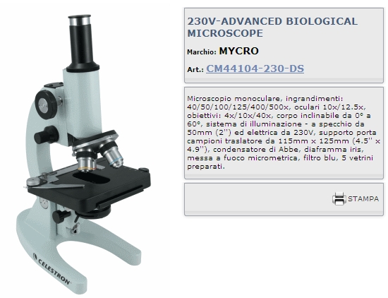con le ottiche in dotazione: 40x, 100x, 400x, 1000x •Messa a fuoco micrometrica